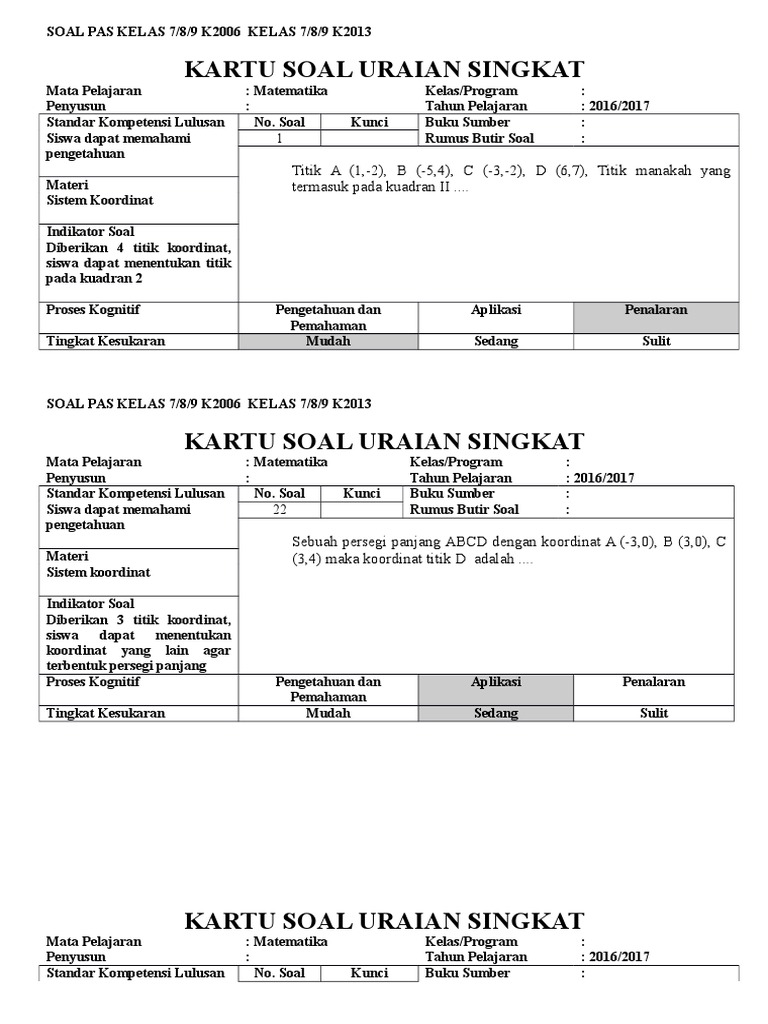 Soal dan kunci jawaban pat matematika smp kelas 7 kurikulum 2013 penilaian akhir tahun pat pada kurikulum 2013 atau ulangan kenaikan kelas ukk pada kurikulum 2006 kini memasuki hari kedua yakni hari selasa 14 mei 2019 dilaksanakan pat dengan mata pelajaran yang diujikan adalah matematika dan bahasa indramayu atau mulok muatan lokal. Pilihlah salah satu jawaban yang benar dengan memberikan tanda silang pada pilihan a, b, c atau d! Memahami pengetahuan (faktual, konseptual, dan prosedural) berdasarkan rasa ingin tahunya tentang ilmu pengetahuan, teknologi, seni, budaya terkait fenomena dan kejadian. Soal uraian buku siswa kelas vii matematika ayomadrasah 36 kelas vii smpmts semester 1 a. Ya tidak jika tidak, jelaskan pada bilangan yang bagaimana perkalian yang menghasilkan 3 angka. Smp kelas 7 semester 1 matematika seperti matriks, kalkulus, logika, fungsi, integral, turunan dan berbagai contoh soal matematika tingkat sd smp sma dan umum. Soal un matematika smp 2019. Pilihan ganda yang berwarna merah adalah kunci jawaban. 1 kumpulan soal matematika smp kelas 7 dirangkum oleh moch. Uji kompetensi 6 matematika kelas 7 semester 2 soal uraian. Contoh soal bahasa indonesia kelas 7 lengkap dengan kunci jawabannya. Download soal dan kunci jawaban uts/pts matematika semester 2 kelas 7 smp/mts kurikulum 2013. Soal dan pembahasan lengkap matematika uji kompetensi 9 penyajian data smp kelas 7 kurikulum 2013 revisi 2016 uraian b.