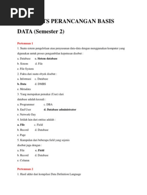 Soal Uts Struktur Basis Data Semester 2 Bsi from imgv2-1-f.scribdassets.com Maybe you would like to learn more about one of these? Check spelling or type a new query. Soal uts sistem basis data bsi semester 3. We did not find results for: